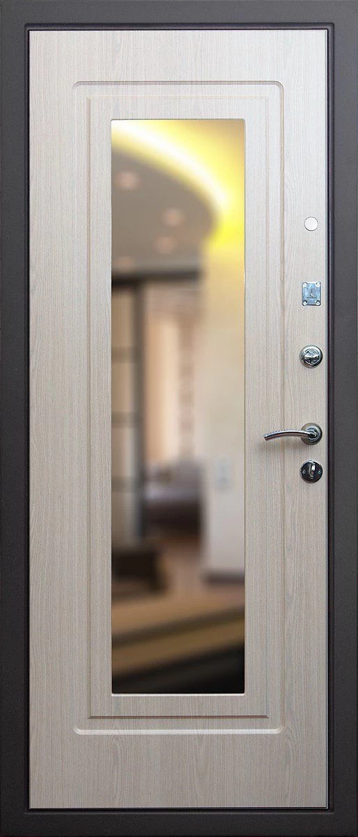 Прочная металлическая Дверь с зеркалом DZ385 по цене от 25 000 руб. под заказ в любой комплектации. Вы можете выбрать материал, замки, цилиндры и многое другое. Производим сами! Быстрая доставка и установка в Жуковском.