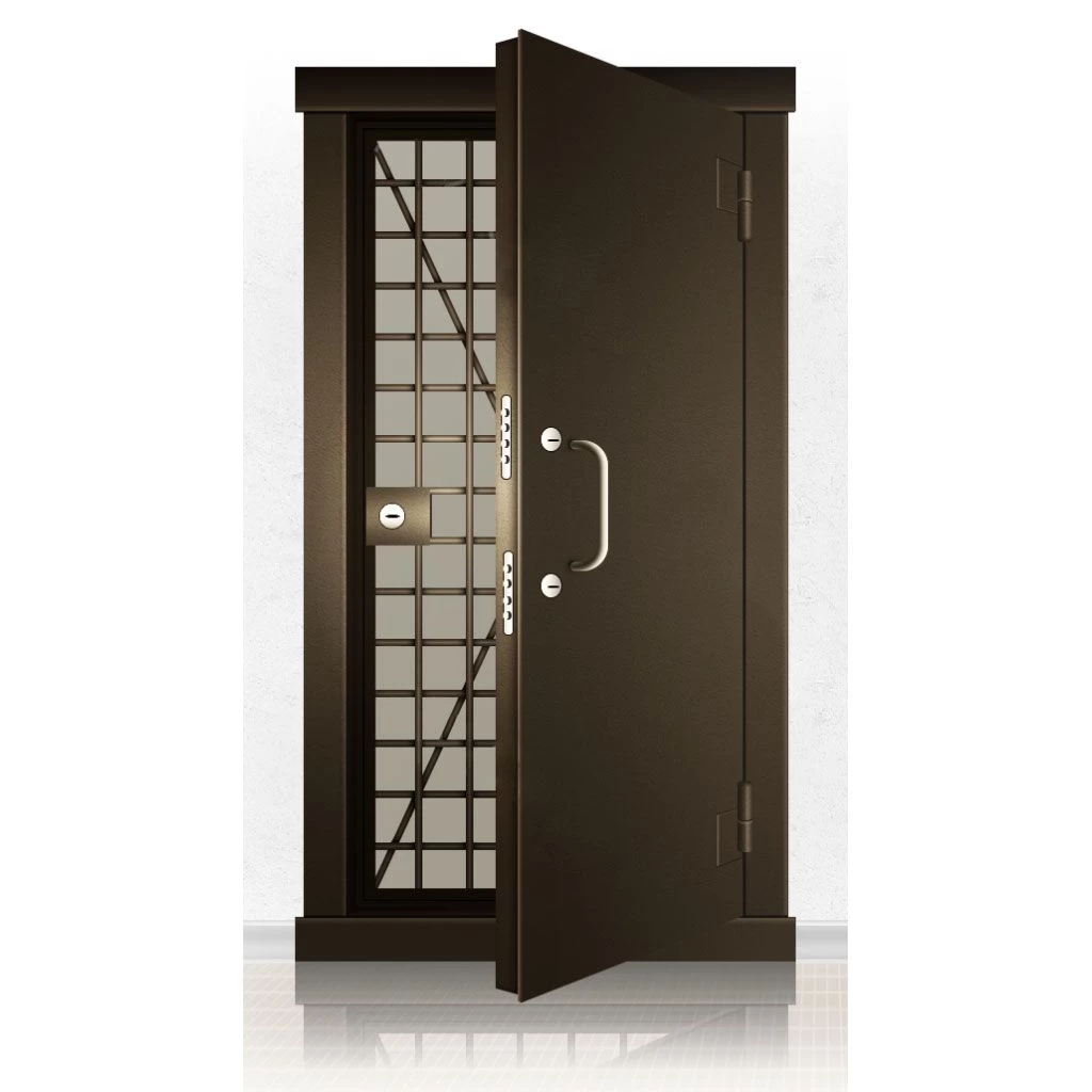 Металлические двери КХО и КХН представляют собой входные блоки, обладающие высоким уровнем взломостойкости и состоят из трех основных элементов: усиленного каркаса, сплошного металлического полотна и решетчатой двери. Дверной блок изготавливается из стального уголка 100*100 мм. Места крепления блока к стене цементируются и закрываются стальными наличниками шириной 40 мм. Крепеж заходит вглубь стены на 80 мм. В конструкции внешней створки монтируются ребра жесткости, для обшивки используется сталь толщиной не менее 3 мм. Внутренняя решетка изготавливается из прутка диаметром 16 мм. Размер ячеек решетки должен составлять не более 15 на 15 см. В точках пересечения прутья надежно приваривают друг к другу. В КХО и КХН необходимо поддерживать определенную температуру и влажность. Для этого внутреннее пространство глухой двери заполняется теплоизоляционным материалом, а по периметру двери приклеивается уплотнитель. Такие двери оборудуются замками с повышенным уровнем взломостойкости. Специализированные двери КХО и КХН в Жуковском могут быть оснащены сигнализацией, в конструкции могут быть проушины для навесного замка и элементами для опечатывания. Если идет речь о двери в комнату хранения оружия, в створке оборудуется окно для выдачи оружия и спец. средств, которое накрывается стальной дверцей.