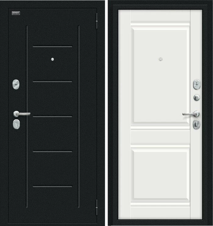 Надежная входная Дверь Браво Некст Kale Букле черное/Off-white премиум класса по цене 32 150 руб. Большая толщина стали защитит от проникновения в ваш дом, квартиру или коттедж. Используется очень качественная фурнитура: замки, цилиндры, ручки, защелки. Покрытие и отделка двери изготовлено под внимательным контролем производителя. Дверь имеет долгий срок службы и гарантию.