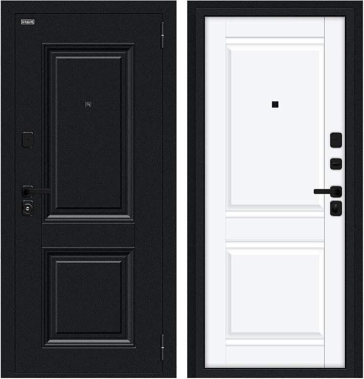 Надежная входная Дверь Браво Некст МФ/SBlack Букле черное/White Silk премиум класса по цене 31 650 руб. Большая толщина стали защитит от проникновения в ваш дом, квартиру или коттедж. Используется очень качественная фурнитура: замки, цилиндры, ручки, защелки. Покрытие и отделка двери изготовлено под внимательным контролем производителя. Дверь имеет долгий срок службы и гарантию.