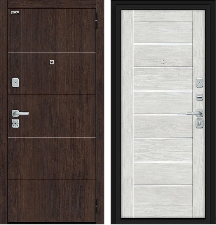 Надежная входная Дверь Браво Прайм/BChrome Almon/Bianco Melinga премиум класса по цене 35 500 руб. Большая толщина стали защитит от проникновения в ваш дом, квартиру или коттедж. Используется очень качественная фурнитура: замки, цилиндры, ручки, защелки. Покрытие и отделка двери изготовлено под внимательным контролем производителя. Дверь имеет долгий срок службы и гарантию.