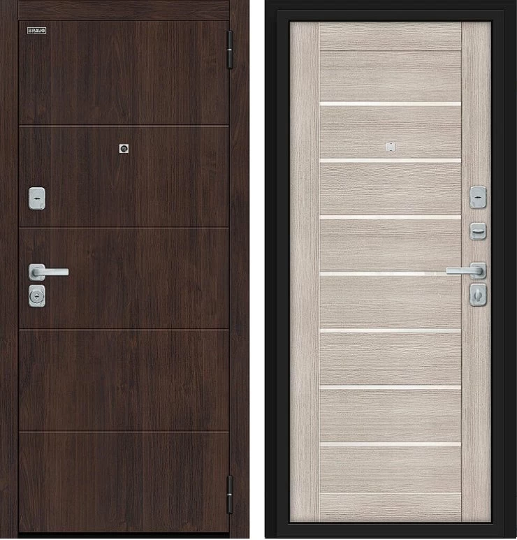 Надежная входная Дверь Браво Прайм/BChrome Almon/Cappuccino Melinga премиум класса по цене 35 350 руб. Большая толщина стали защитит от проникновения в ваш дом, квартиру или коттедж. Используется очень качественная фурнитура: замки, цилиндры, ручки, защелки. Покрытие и отделка двери изготовлено под внимательным контролем производителя. Дверь имеет долгий срок службы и гарантию.