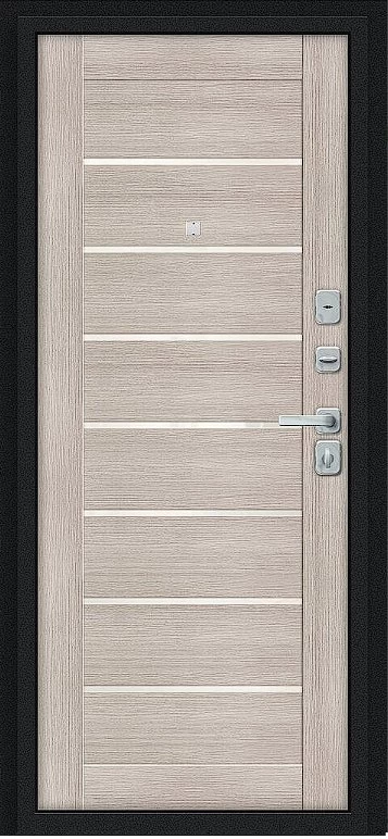 Дверь Браво Техно/BChrome Букле черное/Cappuccino Melinga среднего ценового диапазона. Стоит дверь 28 600 руб. и это отличное соотношение цены и качества. Модель подойдет для установки, например в новостройку. Прослужит долго и будет надежной защитой вашей квартиры или дома.