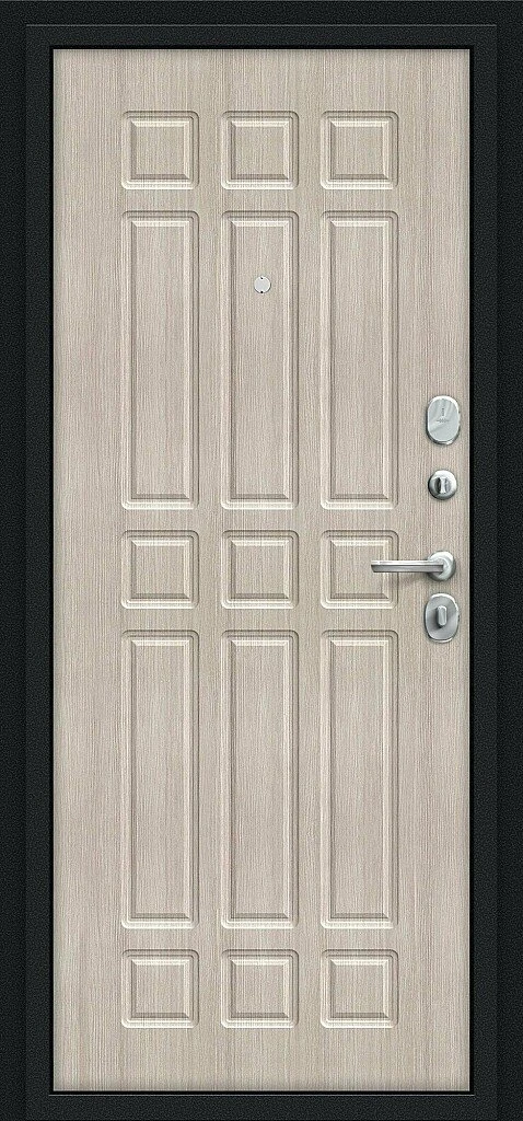 Семь усиливающих уголков и защитный карман для замков. Дополнительную стойкость ко взлому обеспечивают два противосъемных штыря.