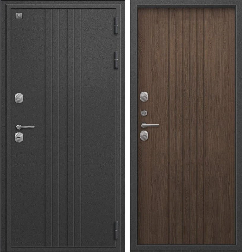 Надежная входная Дверь Термо-90 графит букле - миндаль рифлёный премиум класса по цене 32 950 руб. Большая толщина стали защитит от проникновения в ваш дом, квартиру или коттедж. Используется очень качественная фурнитура: замки, цилиндры, ручки, защелки. Покрытие и отделка двери изготовлено под внимательным контролем производителя. Дверь имеет долгий срок службы и гарантию.